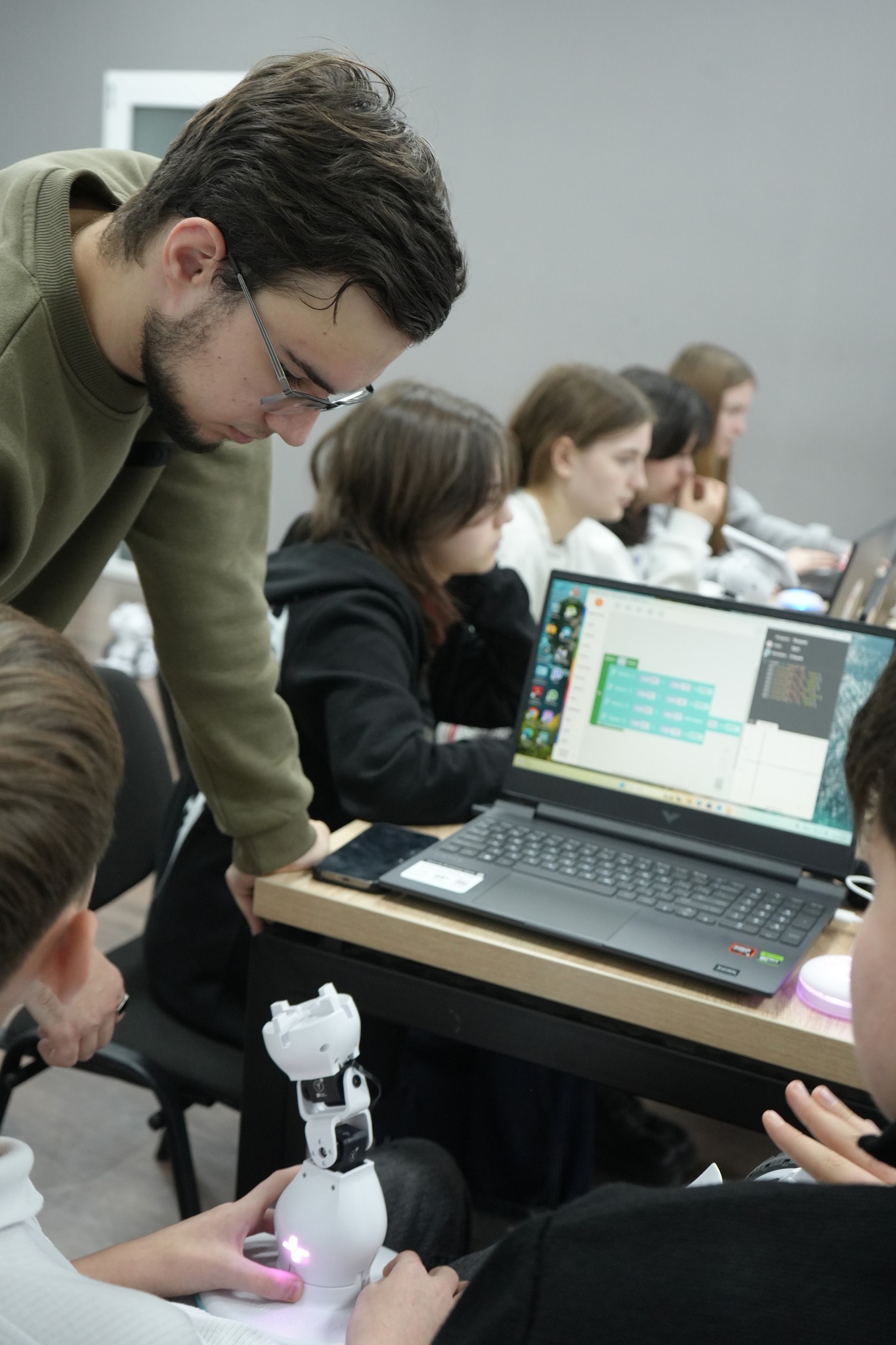 Prima sesiune, desfășurată sub tema „Introducere în robotică: mișcări de bază și coordonarea mișcărilor”, a oferit participanților oportunitatea de a înțelege principiile fundamentale ale mișcării roboților și de a aplica cunoștințele teoretice în exerciții practice. Activitatea este organizată în parteneriat cu Shape Robotics, asigurând acces la tehnologii avansate și expertiză specializată.