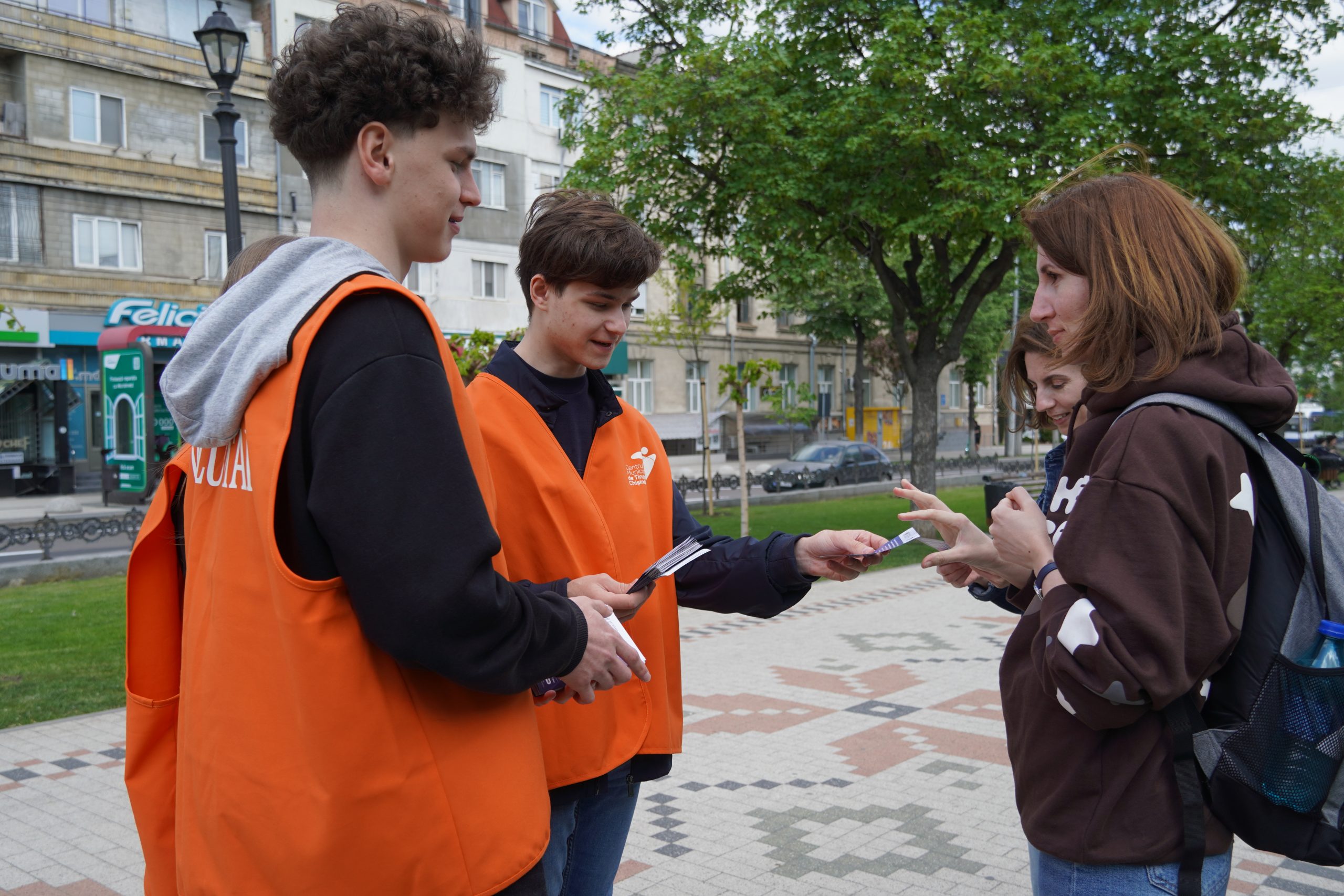 The Youth Centers in Chisinau are intensifying their efforts to reach out to young people through a series of mobile activities regularly held in the Centru sector. Every Wednesday and Saturday, the mobile team is present with an exhibition table, providing essential information about the services and activities available within the Youth Centers.