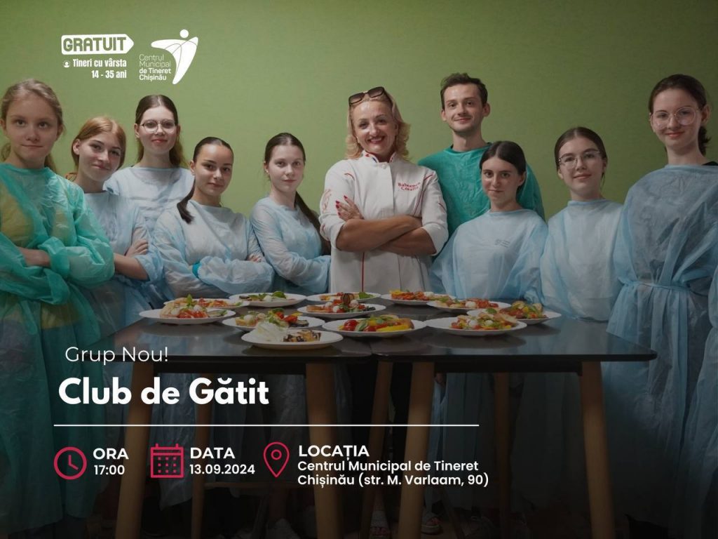 Chisinau City Hall invites all young people interested in culinary art to join the Cooking Club, hosted by the Chisinau Municipal Youth Center. Coordinated by the talented Mrs. Coralia Babcenco, the club offers a unique opportunity for young people to develop their culinary skills in a friendly and interactive environment.