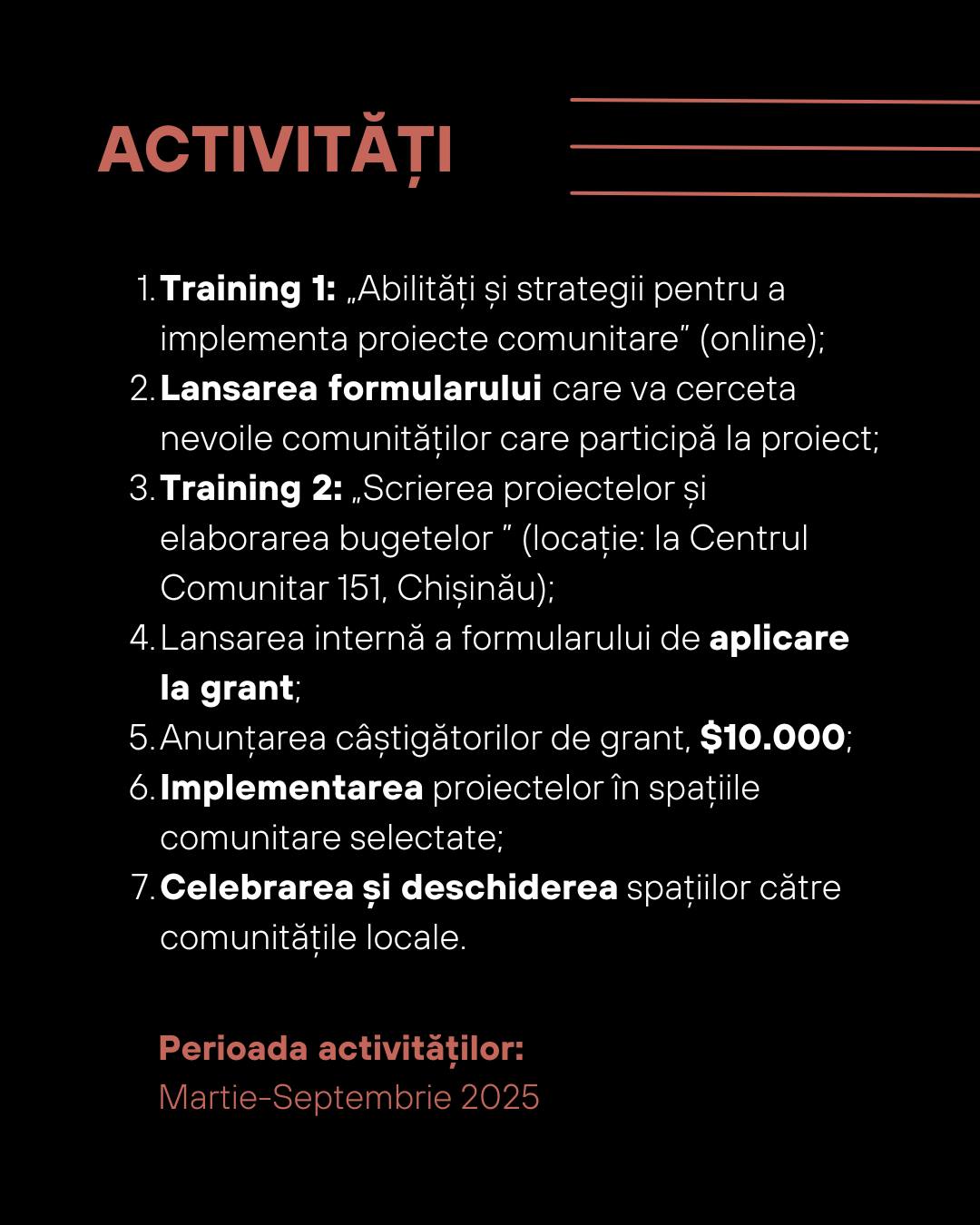 • April 2025 – Training at Community Center 151, Chisinau: “Project writing and budgeting”