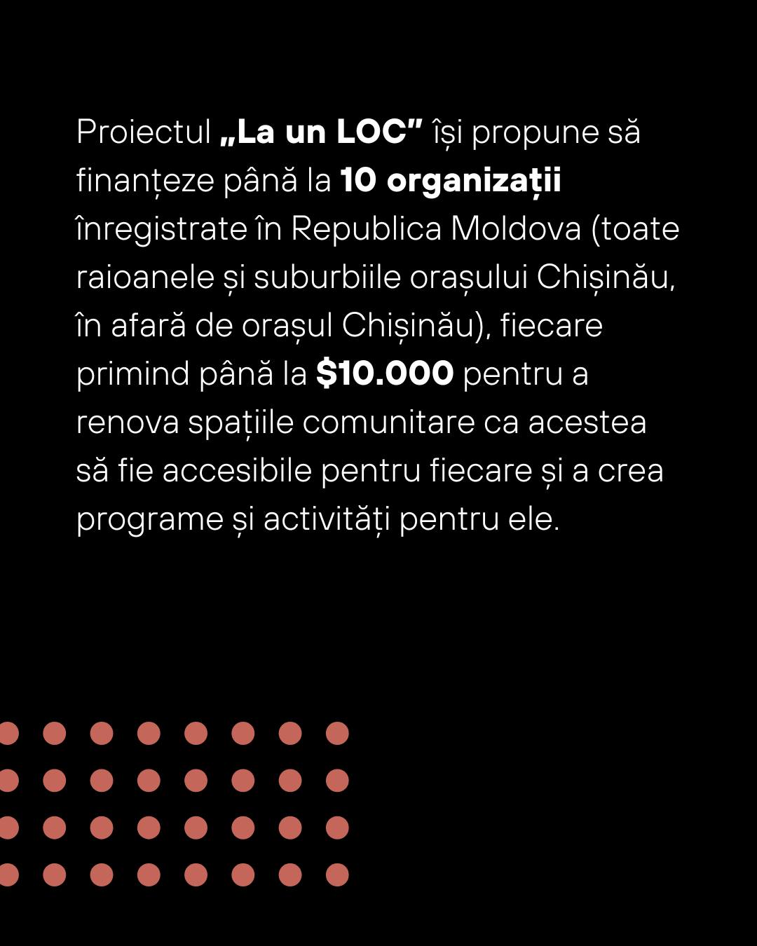 Organizations that want to make community spaces in Moldova more accessible and functional now have an important opportunity. AO Laolaltă has launched the “At a LOC” project, a grant program offering up to $10,000 to renovate and modernize these spaces. In addition to financial support, selected organizations will also receive mentoring, project management training and community engagement strategies.