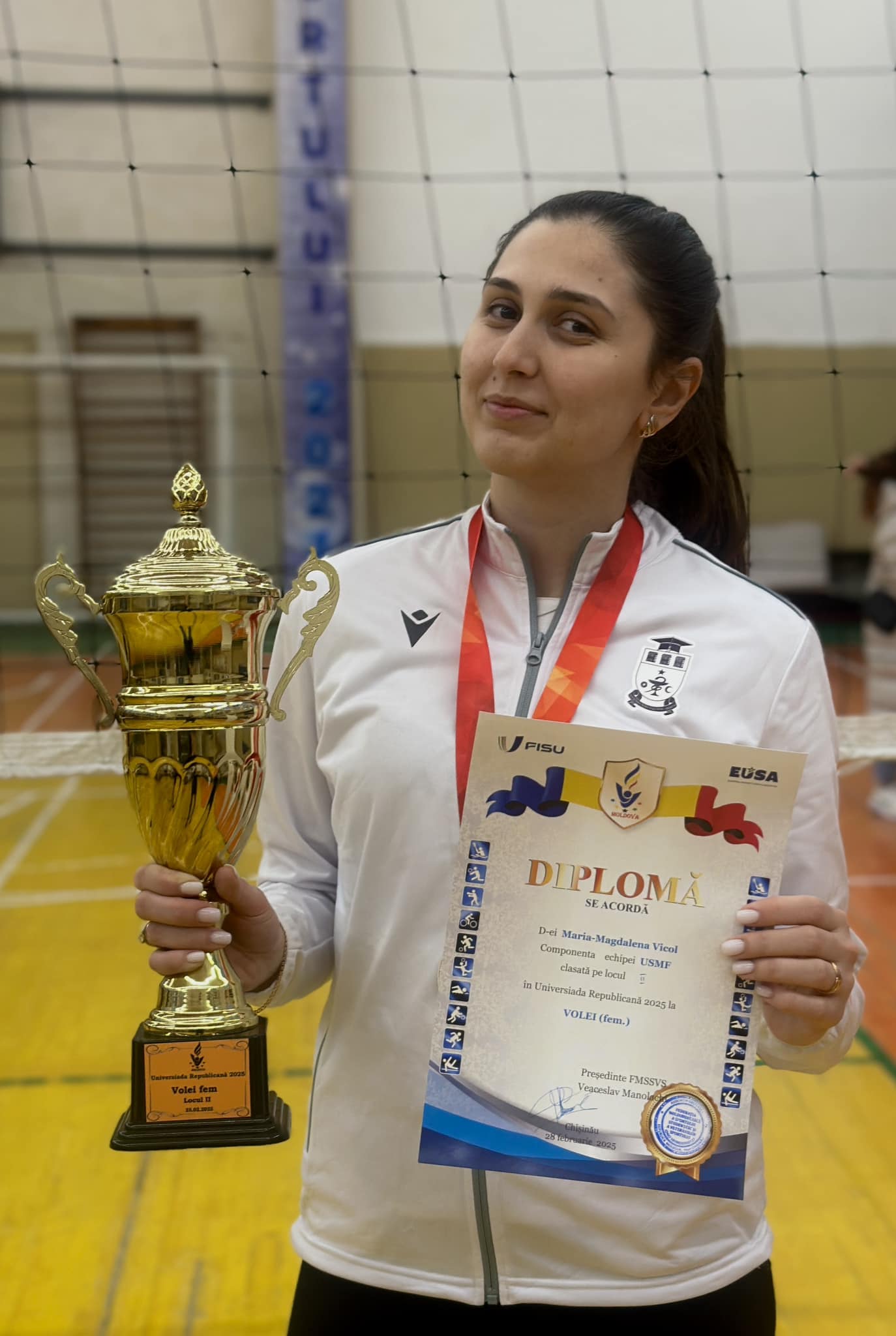 The USMF team was represented by players Maria-Magdalena Vicol, Ana Nicolaev, Victoria Cîrpac, Dana Ceaglei, Cătălina Corniță, Eva Iurcișina, Jana Cassa, Ionela Nicoară, Cristina Lopotenco, Adina Iapiev, Dumitrița Lefter, Andreea Lisbon, Mădălina Triboi, Sofia Gavriușenco and Inga Ceaglei. The team’s performance owes as much to the effort and determination of the players as to the training provided by coach Iulia Popova, an assistant professor at the Department of Physical Education.