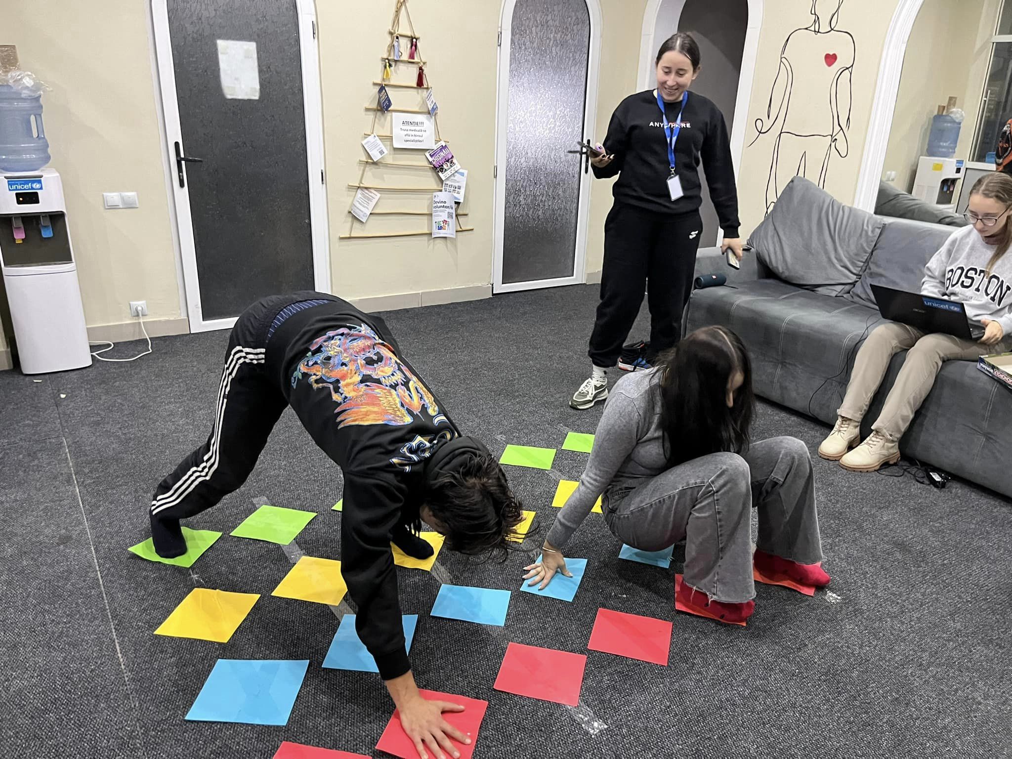 At the Riscani Youth Center, good mood and energy were the main ingredients of a memorable evening. Participants showed creativity and team spirit by improvising their own version of the game “Twisted”, which turned the activity into an unforgettable experience.