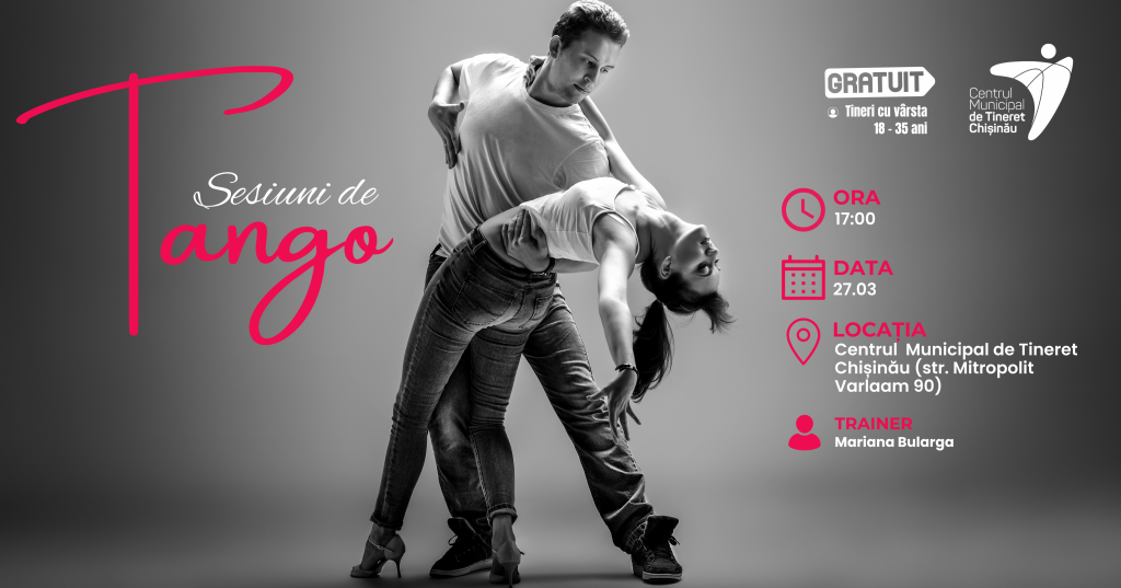Муниципальный молодежный центр Кишинева приглашает вас на бесплатный сеанс танго для молодых людей 18-35 лет.
