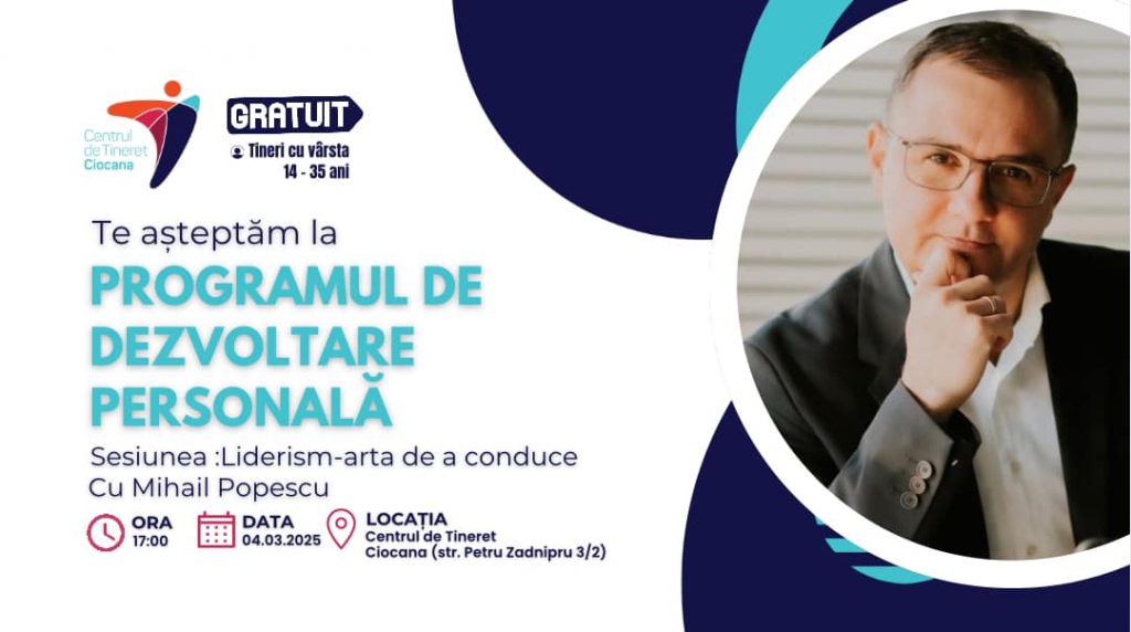 Торжественное открытие состоится 4 марта в 17:00 в Молодежном Центре Чокана (ул. Петру Заднипру, 3/2) при поддержке Михаила Попеску. Участники узнают о принципах подлинного лидерства, о том, как вдохновлять свою команду и справляться с проблемами лидерской роли.