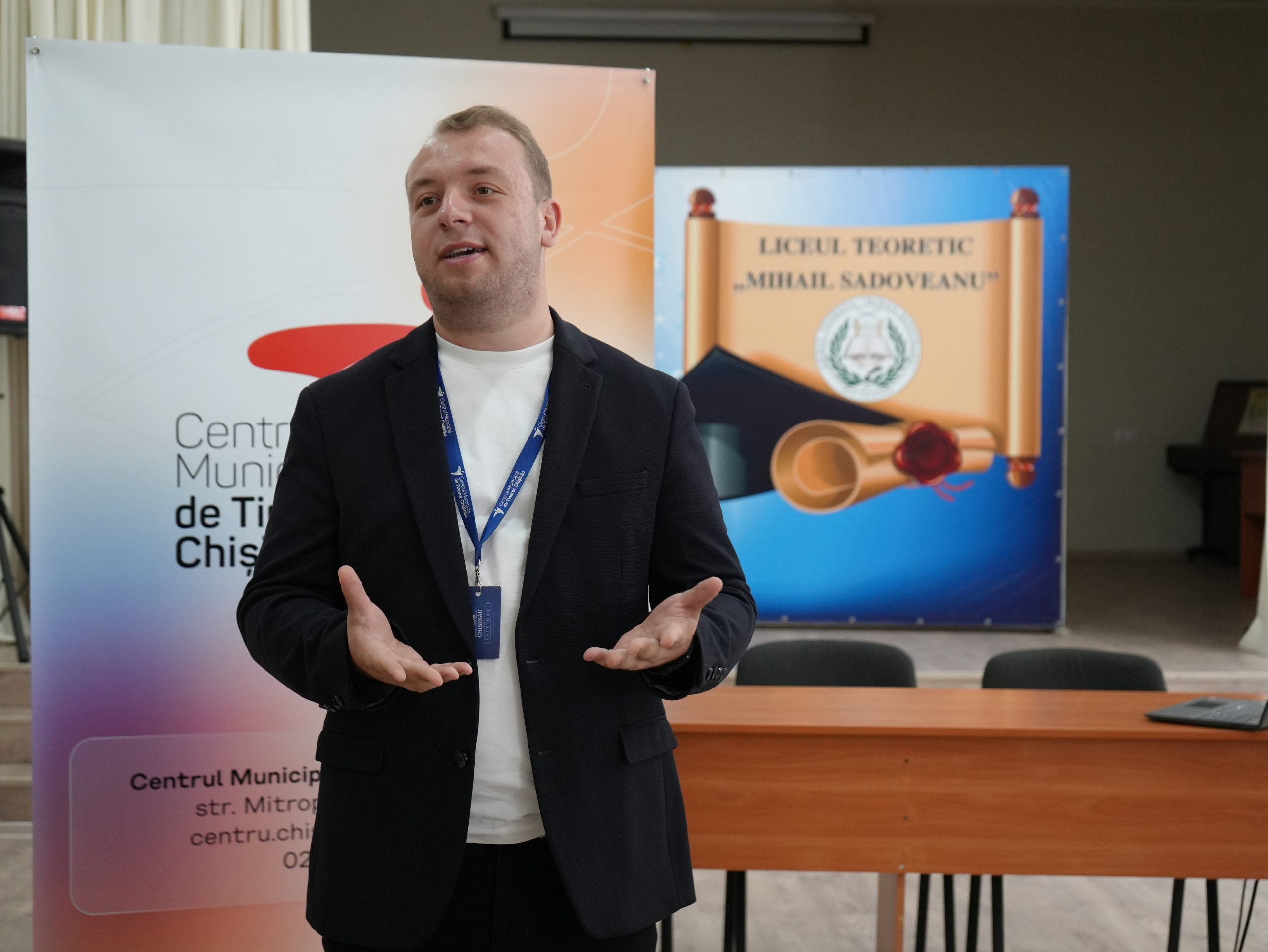 На новом занятии в рамках кампании они побеседовали с молодыми людьми из Теоретического Лицея им. Михаила Садовяну,