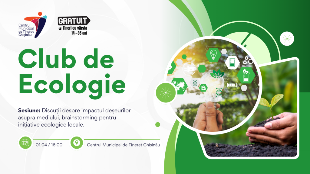 У молодых людей из Кишинева, желающих активно участвовать в защите окружающей среды, теперь есть новое место встречи: Клуб EcoYouth, инициированный Муниципальным Молодежным Центром Кишинева. Первая встреча состоится 1 апреля в 16:00 в штаб-квартире центра по адресу ул. Митрополита Варлаама, д. 90.