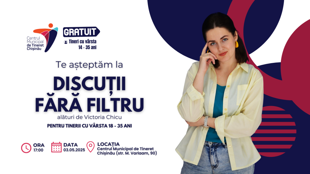 Молодых людей в возрасте от 18 до 35 лет приглашают принять участие во встрече-диалоге с Викторией Кику, которая состоится в субботу, 3 мая 2025 года, начало в 17:00 в Муниципальном молодежном центре Кишинёва, расположенном по адресу: ул. Митрополита Варлаама, 90.