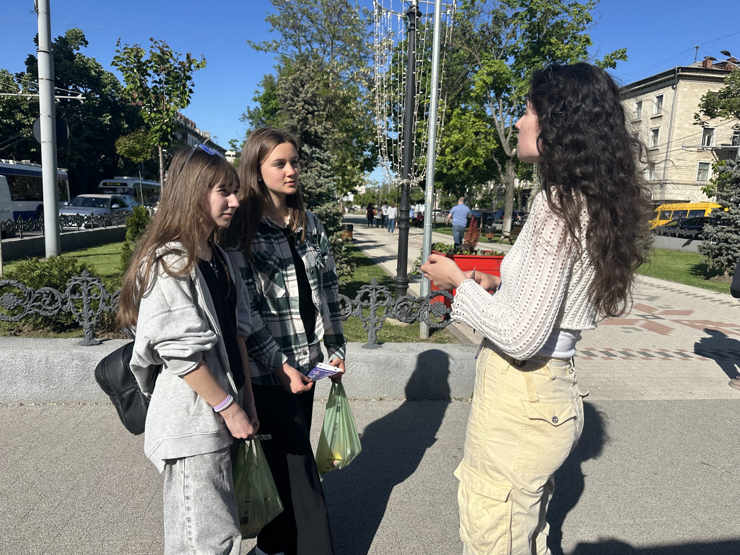 Echipa mobilă a Centrului Municipal de Tineret Chișinău a ieșit în inima orașului pentru a informa și interacționa cu tinerii din zona Străzii Pietonale „Eugen Doga”.